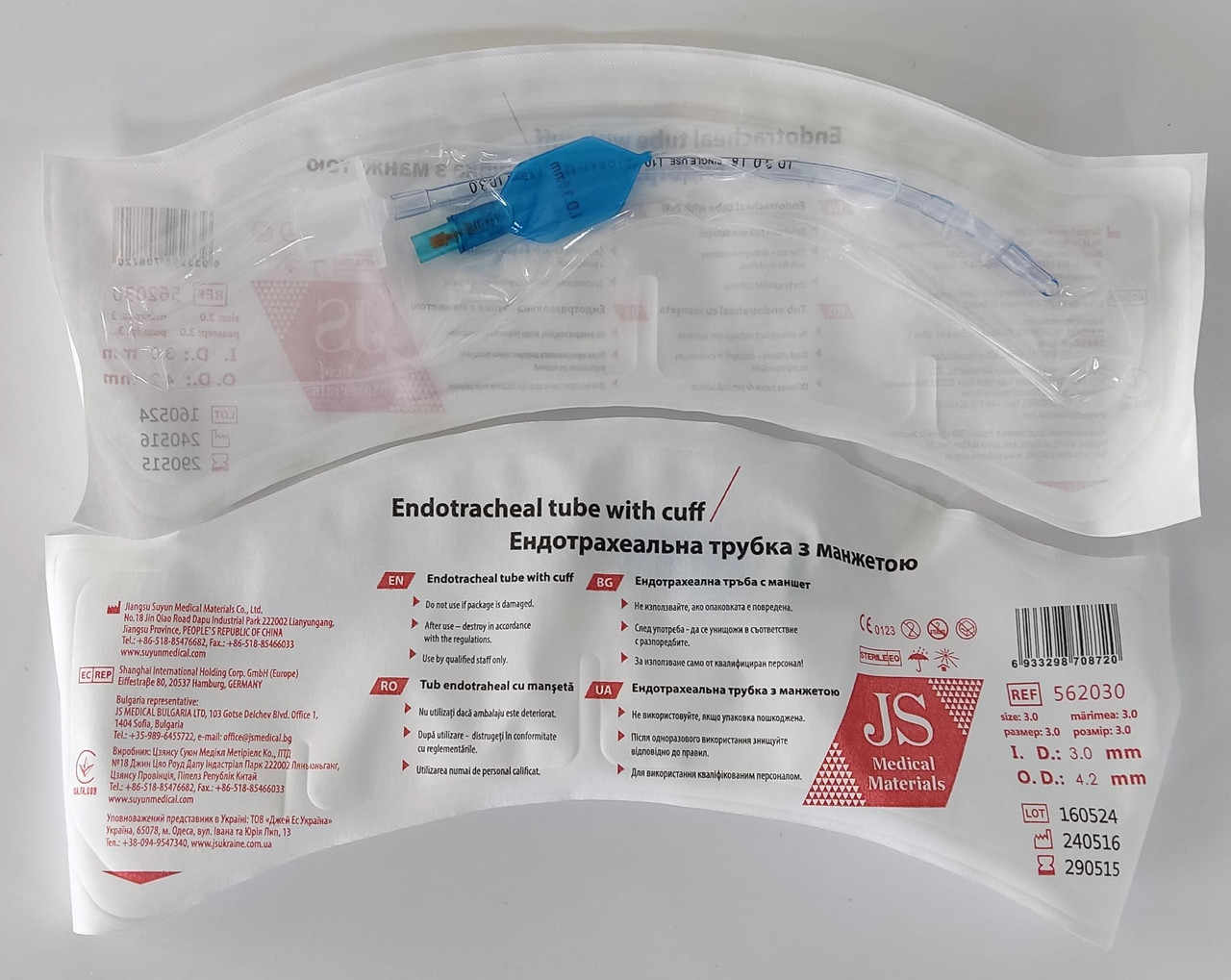 Ендотрахеальна трубка з манжетою – стерильний, апірогенний виріб одноразового використання, призначений для забезпечення дихальних шляхів у клінічних умовах. Використовується у відділеннях анестезіології, реаніматології та інтенсивної терапії.